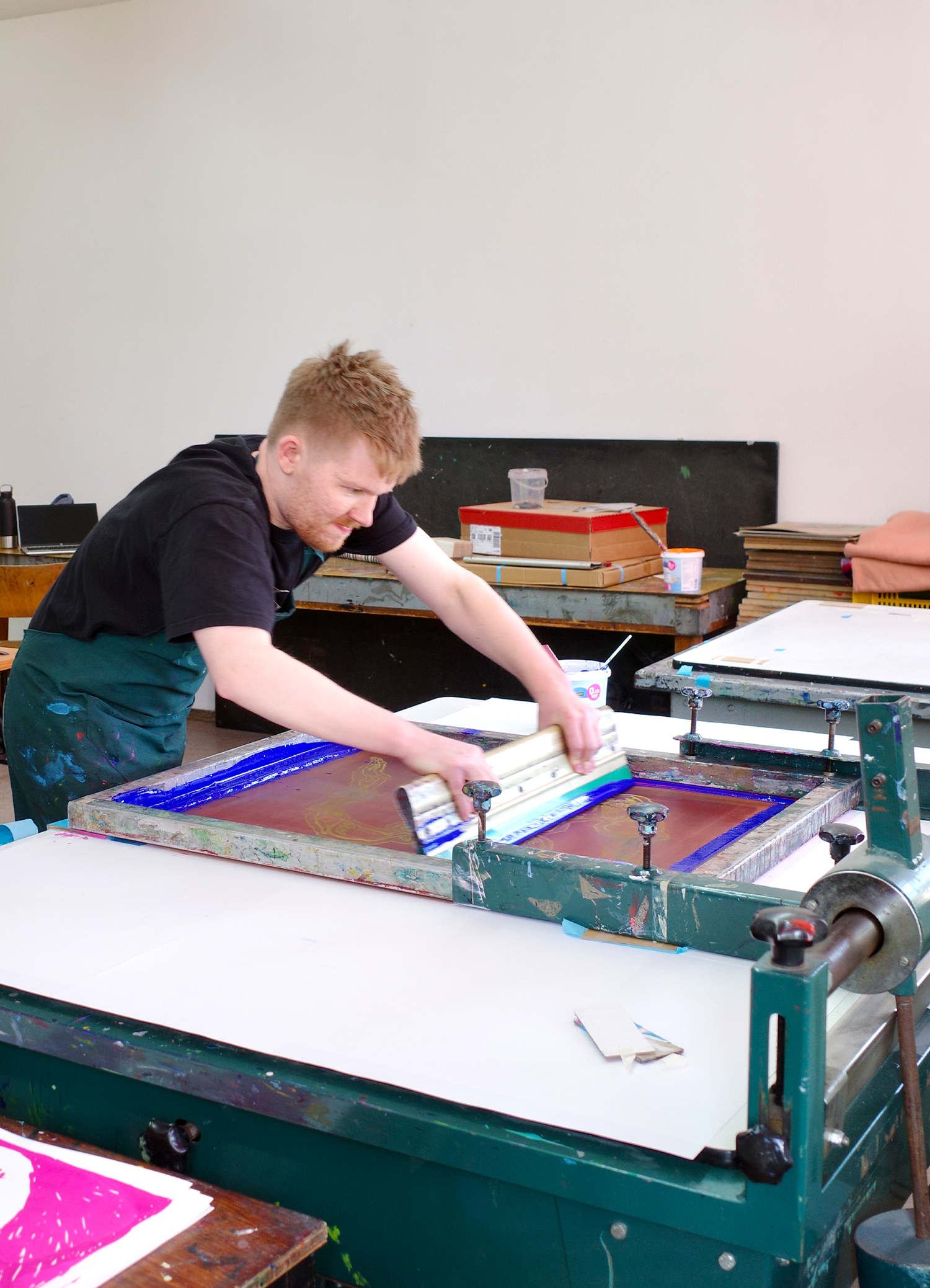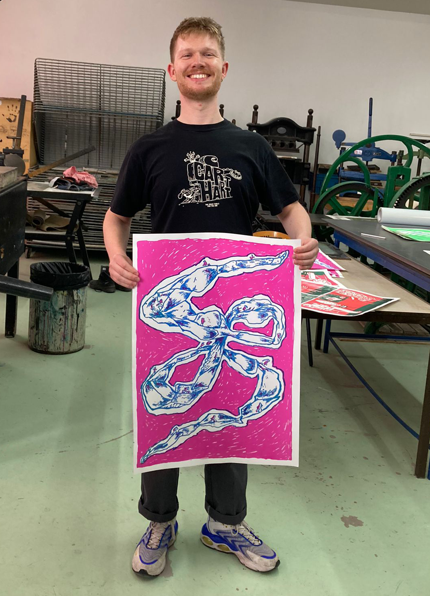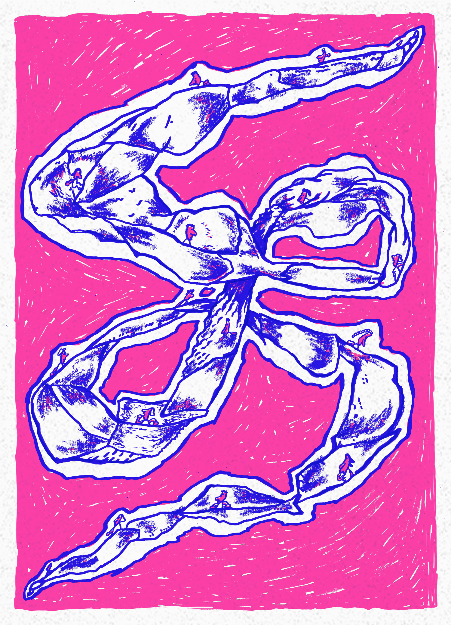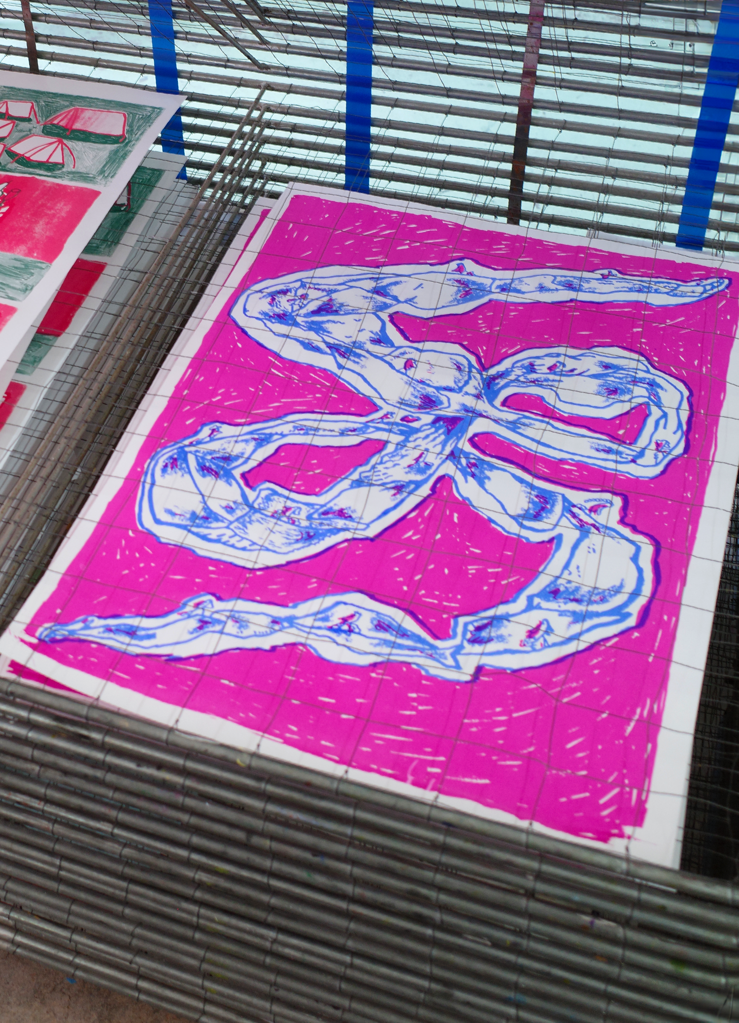 In collaboration with Beeld & Geluid and the Grafisch Atelier Hilversum, I delved into the archives of Beeld & Geluid alongside 5 other creators. The plan was to draw inspiration from an image in the archive and create a piece of work based on that, which we would later screen print at the Grafisch Atelier Hilversum. From this emerged my piece titled "Tijdsloop".